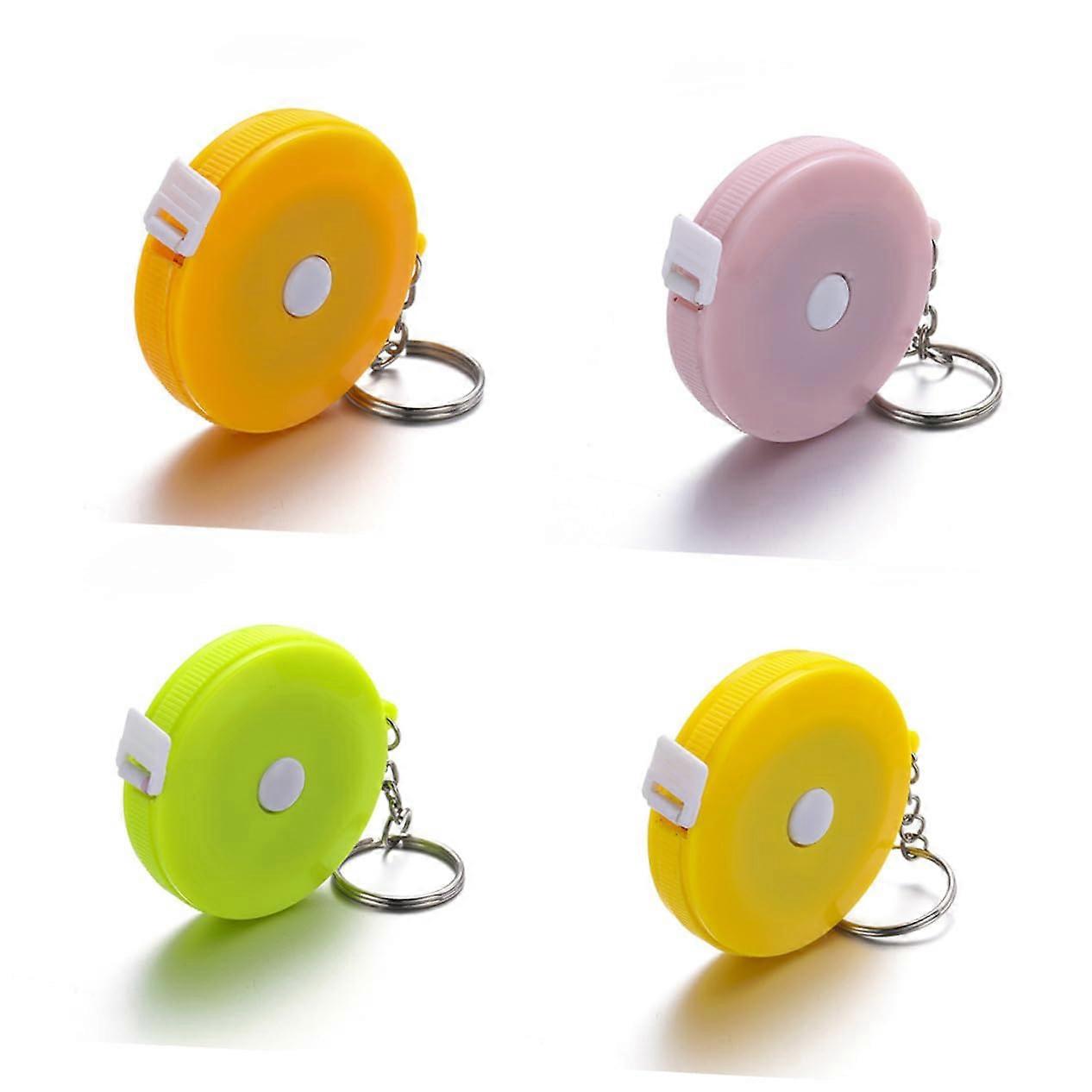 Mini Tape Measure Set of 4 with Key Ring, Plastic and Metal, for Sewing, Fitness, Outdoor Use (Random Color)