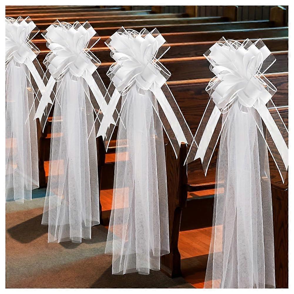 4 Pack Wedding Chair Bows with White Gauze Covers for Church Aisle and Car Decoration