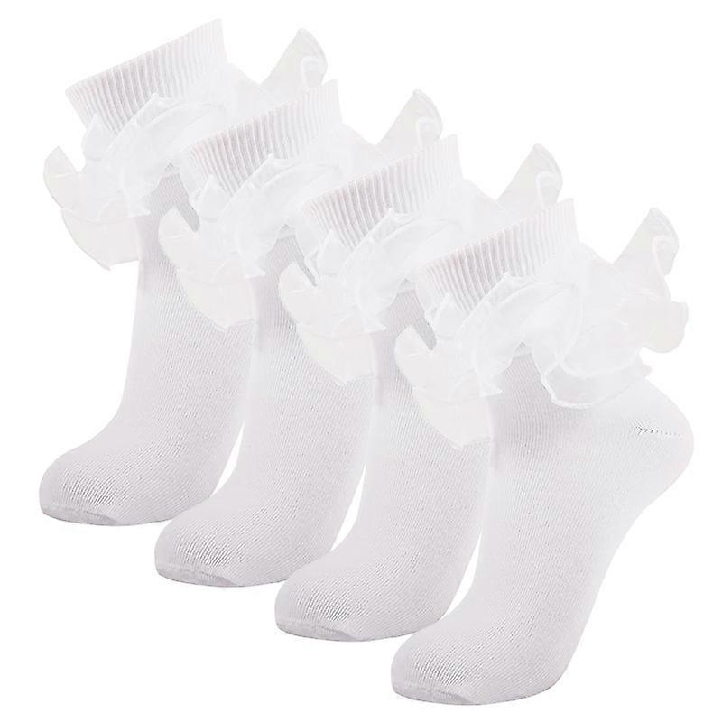 4Pairs Lace Trimmed Cotton Socks For Girls Ruffle Socks Kids Ankle Socks White Baby Frilly Sock