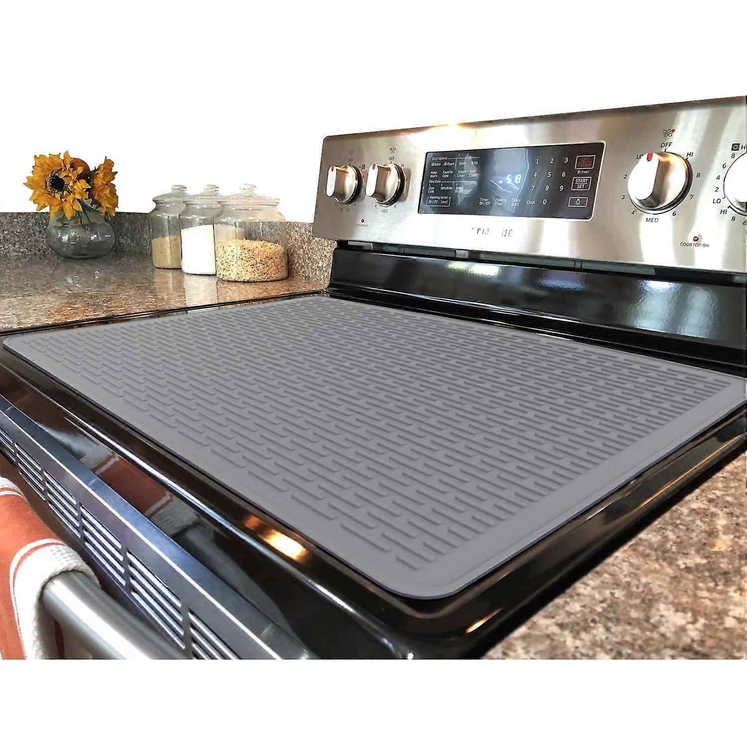 Electric Stove Cover Silicone Mat for Glass Cooktop Protector and XL Dish Drying Mat 30x21 Gray