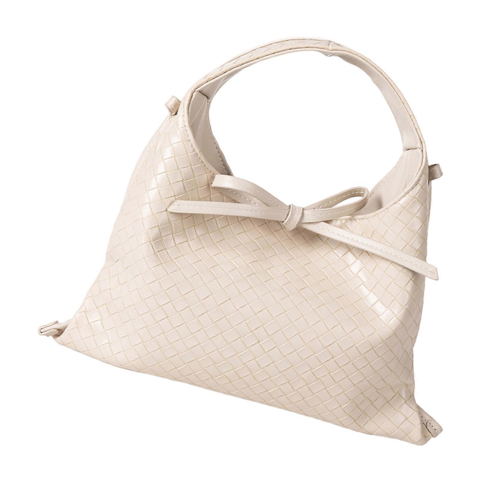 Elegant Braided Handbag Retro Bows Decors Convertible Shoulder Bag Casual Crossbody Purse For Modern Stylish Ladies White