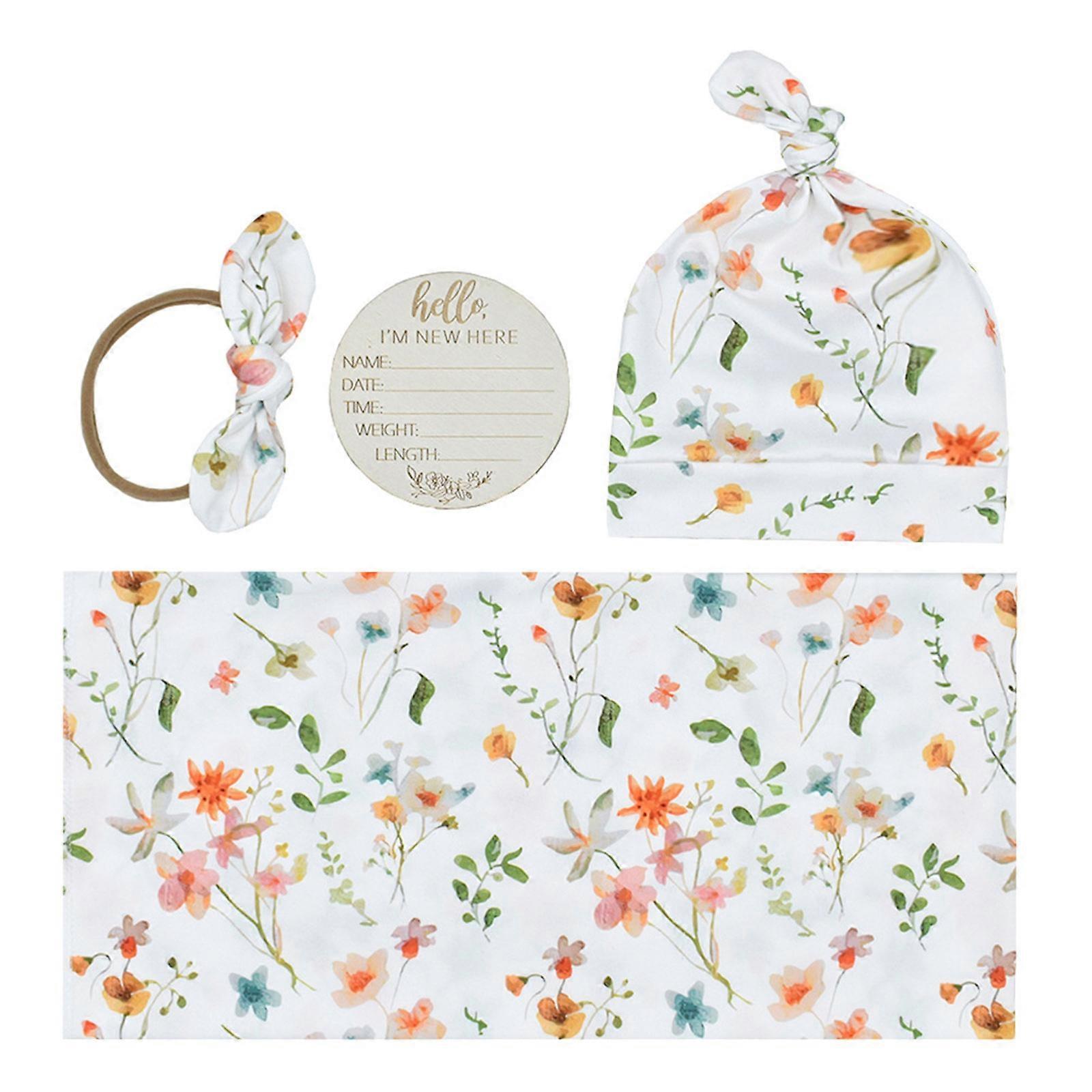 Features: This newborn four pieces set includes swaddles wrap cloth, fetal hat, headband, and monthly card, cute print designing makes babies look more lovelyand charming. Quality material, its soft fabric can give babies warmth and security, as if returning to their mother embraces, this wrapped designing can help newborns feel safe and promote better sleep. In addition, hats can provide head protections and warmth for babies, keeping them comfortable in cool weather, while headbands can be used to secure their hair, prevent it from touching their eyes or mouth, and also add cute and fashionable element. It has excellent breathability and moisture absorption, which can help babies stay dry and comfortable, allowing them to sleep with peace of mind. Suitable for daily use or special occasions, babies shower party, birthday party, and holiday party, etc, great gift for new parent. Specifications: Material: Cotton, Wood Pattern Type: 1, 2, 3, 4, 5, 6(optional) Swaddles Wrap: 80x80cm/31.49x31.49" Fetal Cap: Tiled Width of 16.5cmx2/6.49inchx2, with a height of 22cm/8.66" after tying and 33cm/12.99" without tying Hairband: 13.5cm/5.31", width 4.7cm/1.85" (note: natural states after knotted) Wood Monthly Card Diameter: 10cm/3.93" Package Includes: 1x Baby Swaddles Wrap Cloth 1x Baby Fetal Cap 1x Headband 1x Wooden Monthly Card note: Please allow 1-2cm errors due to manual measurement. Please allow for slight color differences due to different display resolution.