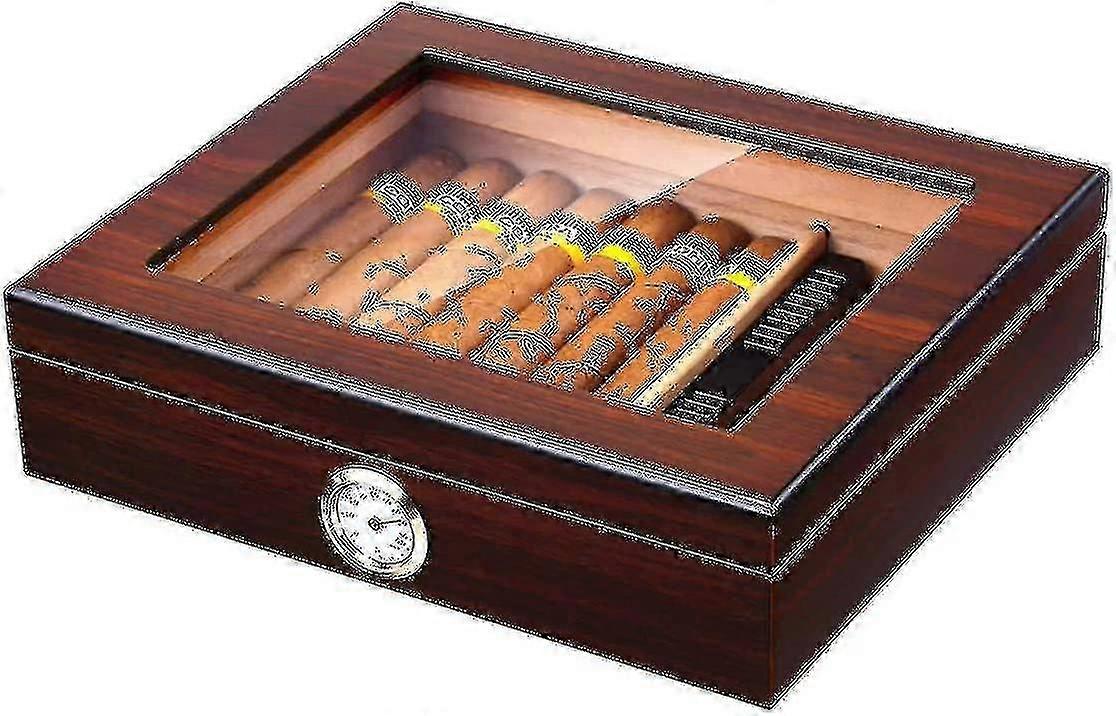 Cedar Wood Cigar Humidor with Humidifier, Glass Top Desktop Storage Box