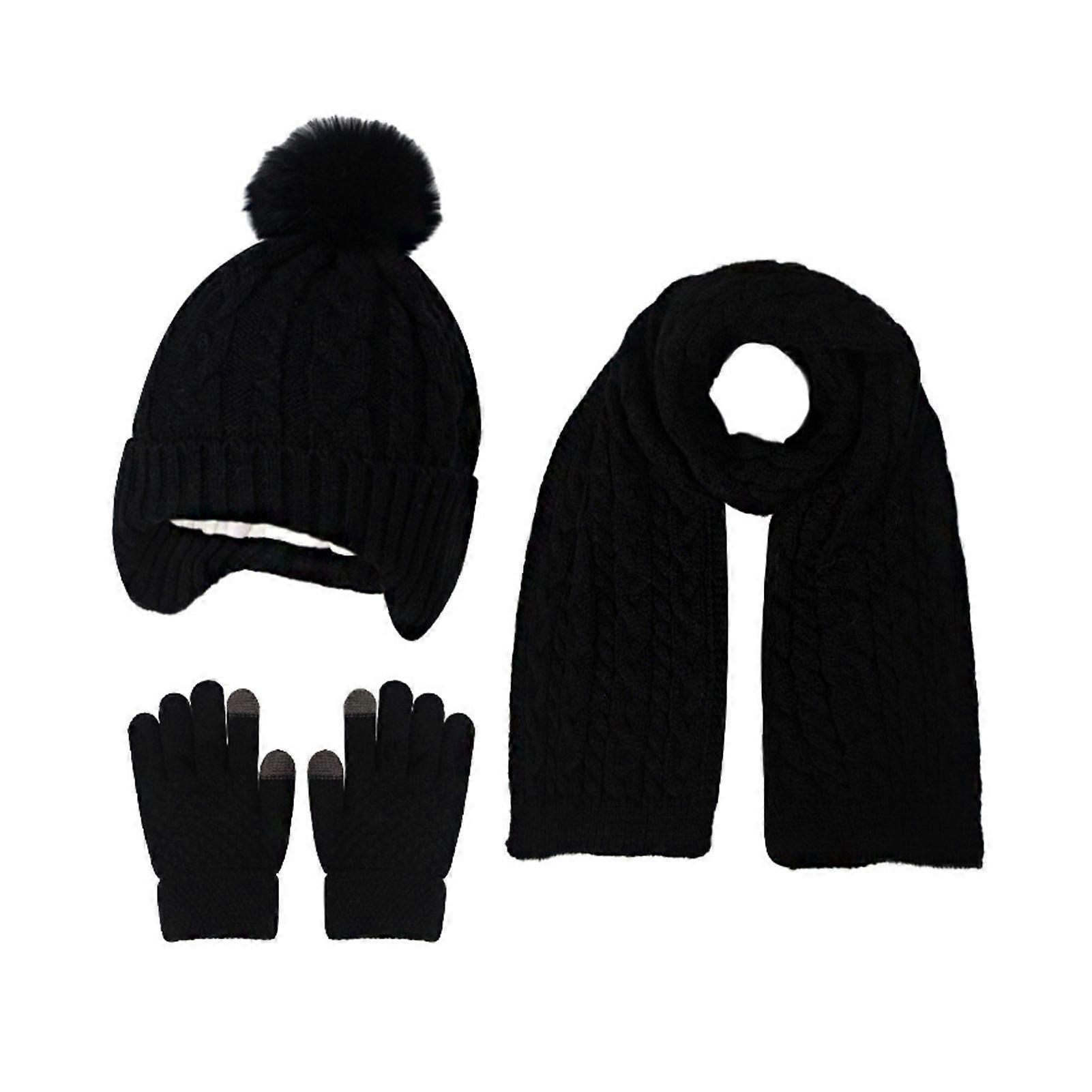 Mengxi 3Pcs/Set Kids Hat Scarf Glove Set Plush Ball Decor Twist Texture Knitting Hat Long Scarf Winter Gloves Set Winter Accessories