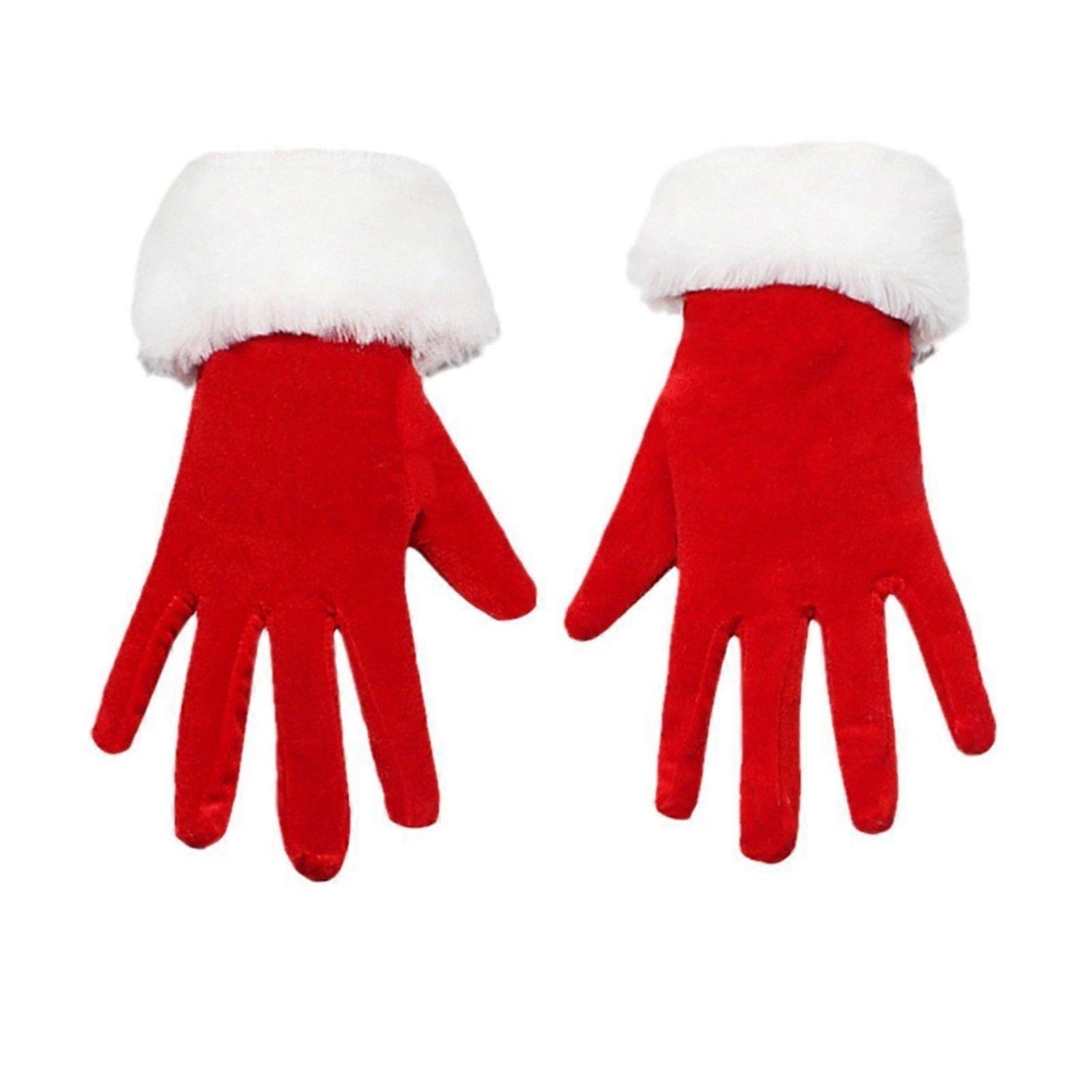 Mengxi Santa Claus Gloves Christmas Red Gloves with White Fuzzy Cuffs Winter Warm Full Finger Gloves for Xmas Party Costume Accessories
