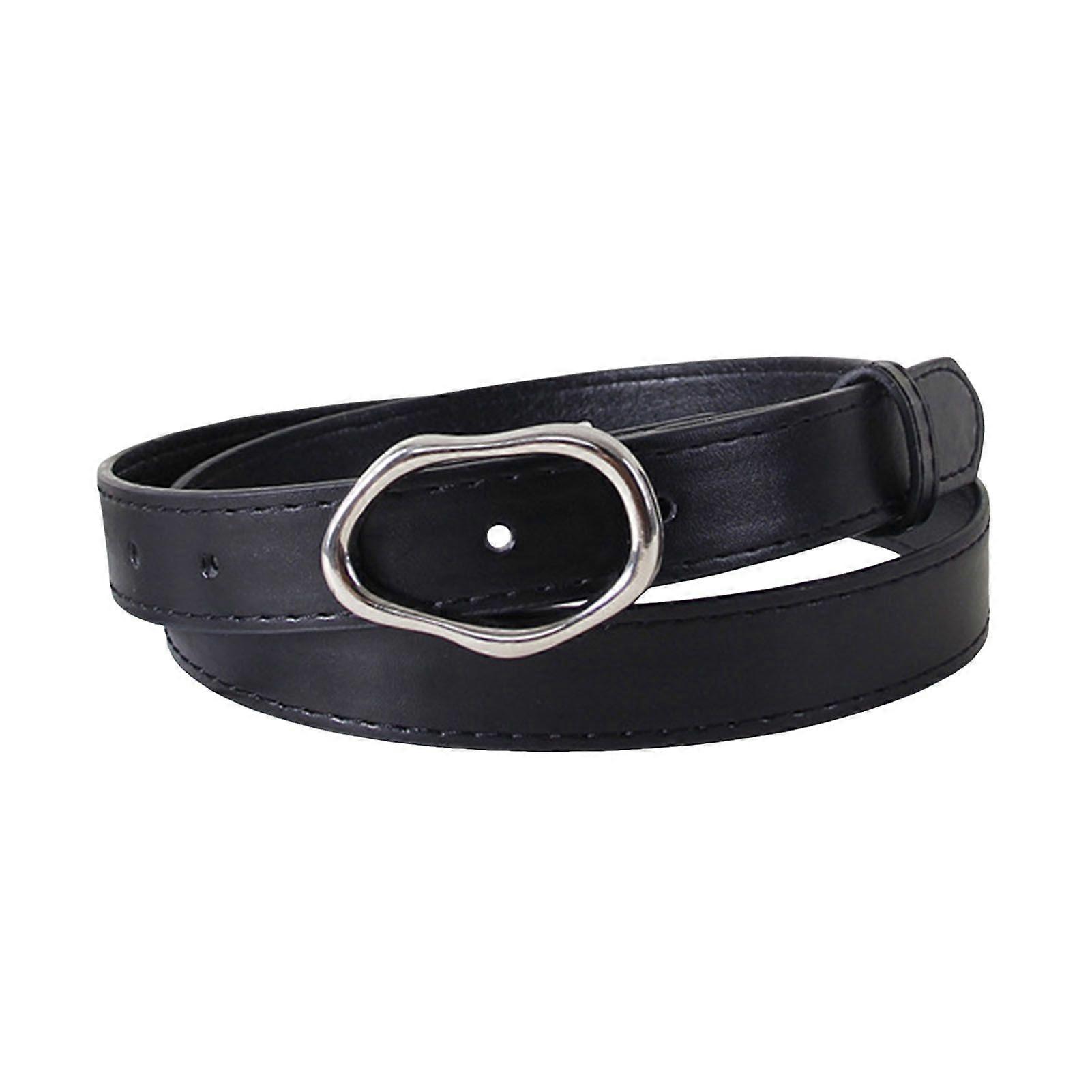 Mengxi Imitation Leather Women Belt Versatile Solid Color Design Irregular Oval Buckle Pin Waistband Dress Shirt Top Waist Belt