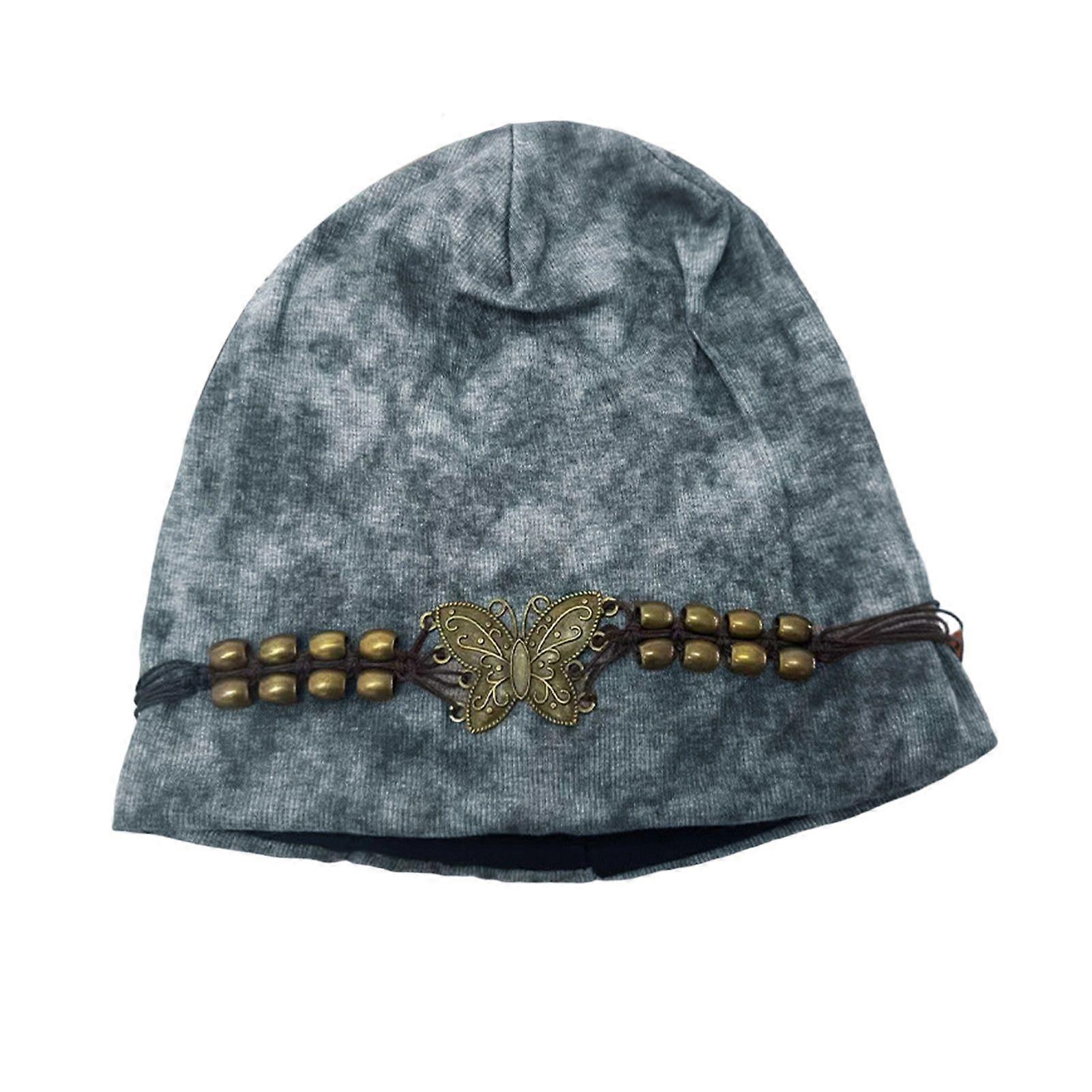 Mengxi Women's Knitted Hat Winter Soft Warm Skull Cap with Tassel Ladies Stretch Slouchy Hat with Beads And Butterfly Decor