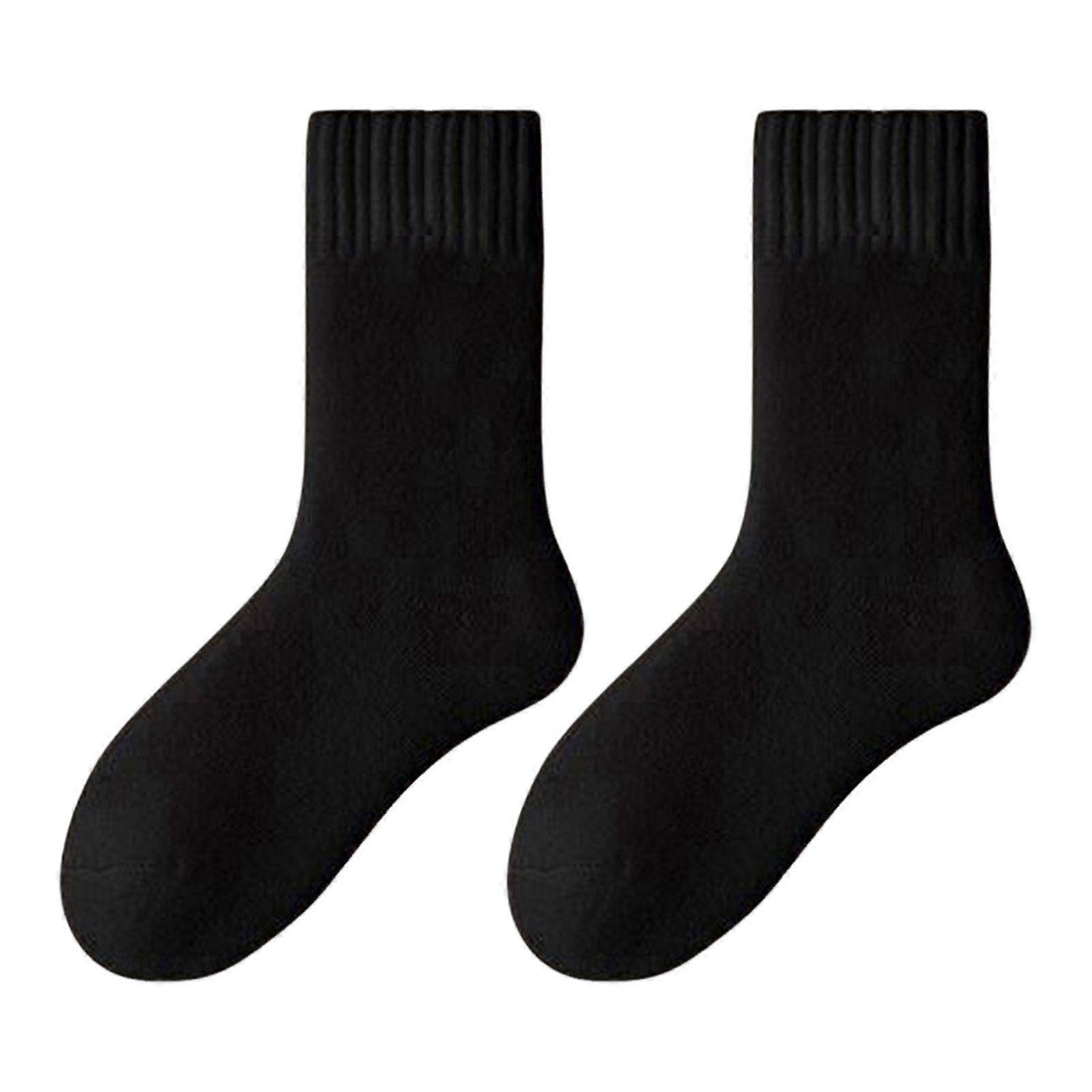 Mengxi 1 Pair Women Winter Socks Solid Color Ribbed Cuffs Thickened Plush Lining Sleeping Socks Autumn Winter Daily Wear