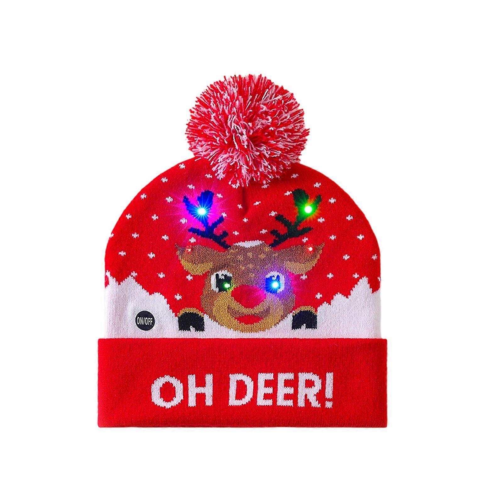 Mengxi Knitting Hat with LED Lights Santa Claus Deer Christmas Tree Pattern Winter Illuminated Hat Festive Atmosphere Accessory