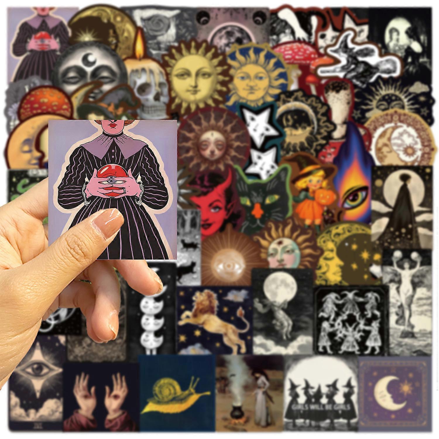 50 borderless, mysterious celestial stickers to decorate guitars, notebooks, and suitcases - DIY waterproof decals