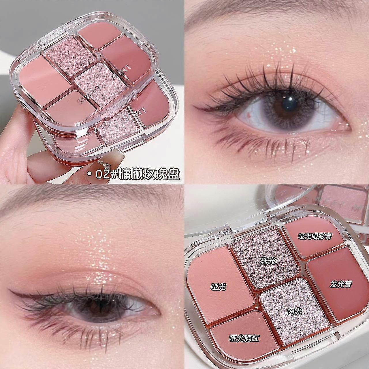 Multi-functional six-color eyeshadow, blush, eyeliner, matte, pearlescent, and highlighting makeup palette