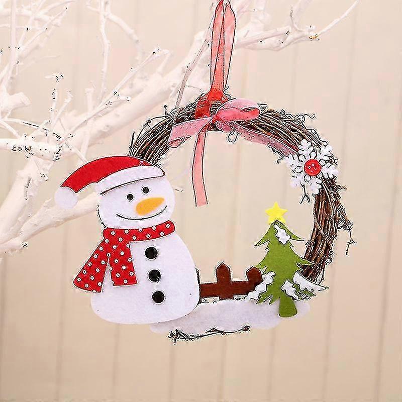 18cm Christmas Wreath Rattan for Front Door with Santa Snowman Garland