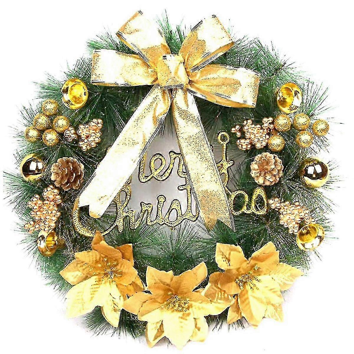 Christmas Door Wreath with Bow Flowers Winter Garland Decoration