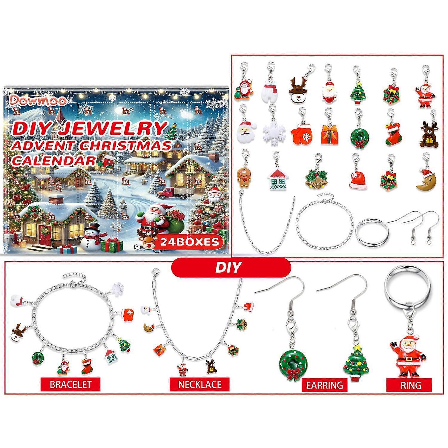 1-6Set Dowmoo 24PCS DIY Christmas Jewelry Advent Calendar Kit Bracelet Necklace Earring Ring Making