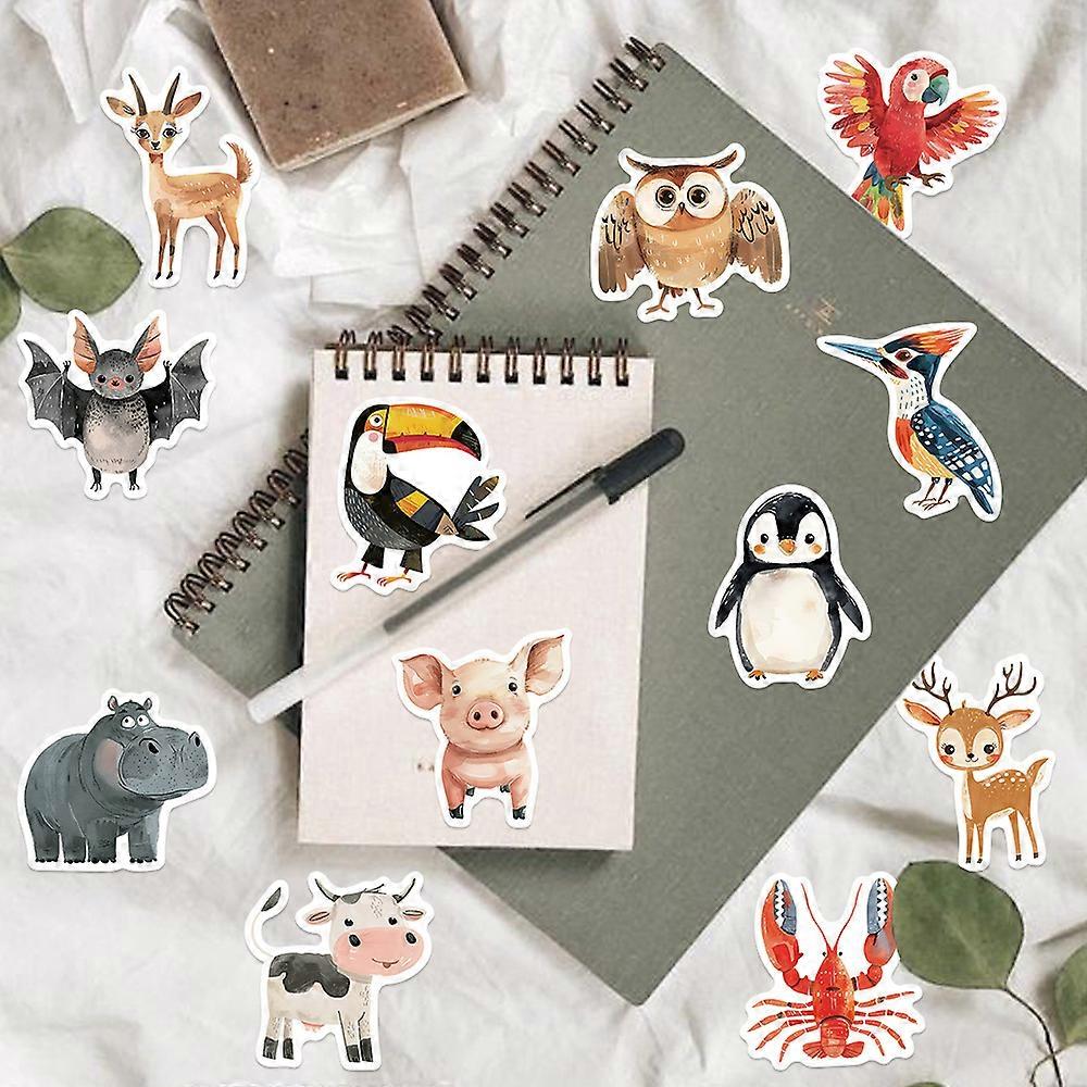 50 Cartoon Hand-Drawn Animal Graffiti Stickers for Decorating Guitars, Notebooks, and Suitcases (DIY Waterproof)