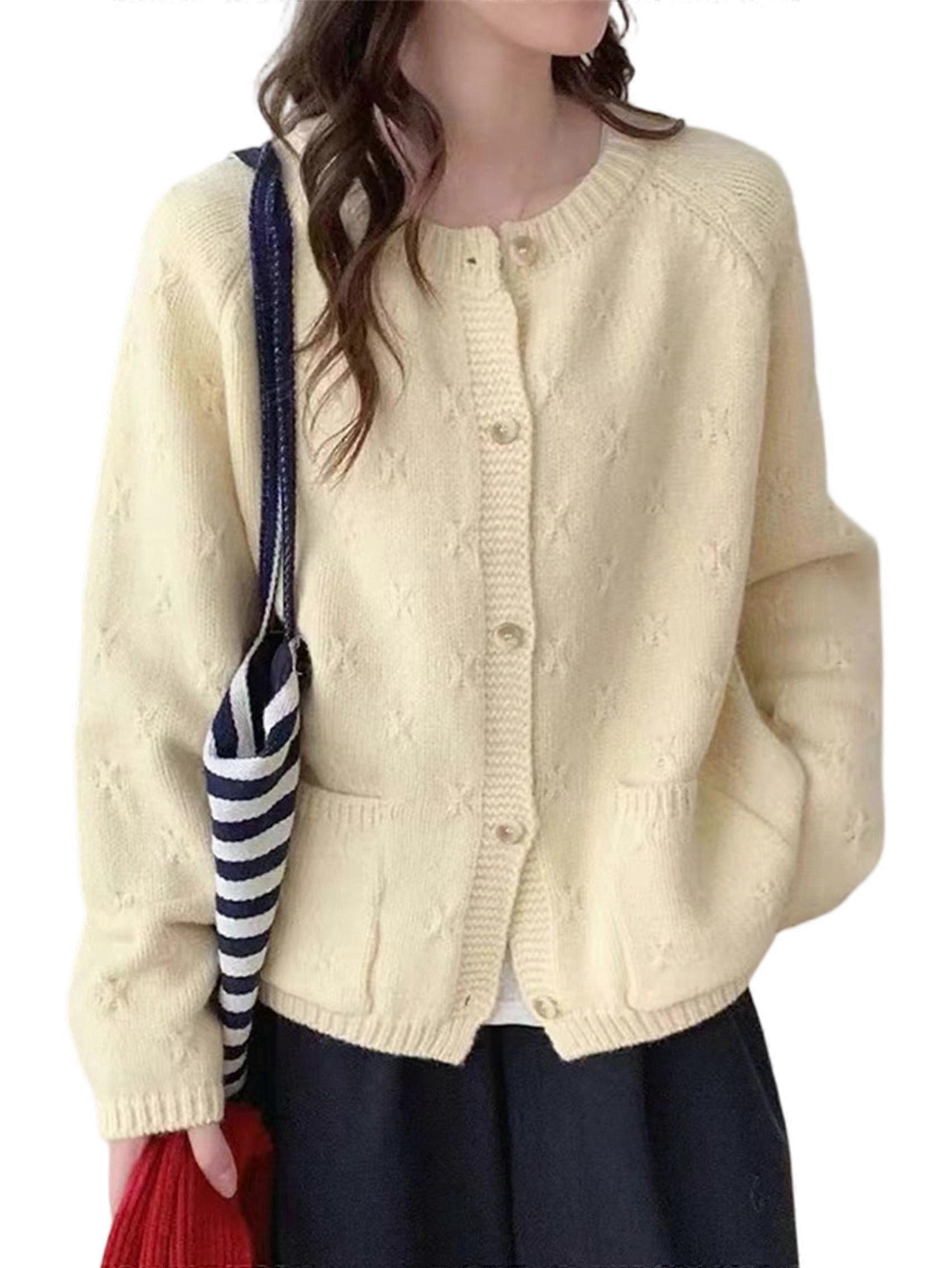 Crafted from 40% acrylic, 30% nylon, and 30% PBT with a subtle stretch, this knit fabric is exceptionally soft, lightweight, and warm. It offers a comfortable, flexible fit with a cozy, delicate texture. This retro-inspired cardigan features a Crew neck, long sleeves, and a button-front closure. The dropped shoulders and relaxed silhouette create an effortlessly chic, casual look. Layer it over tops or dresses and pair with jeans, shorts, or trousers for versatile outfits. Its minimalist design complements both casual and slightly dressed-up styles. Ideal for streetwear, dates, shopping, travel, or daily leisure in autumn and winter. This cardigan adds understated elegance to various everyday occasions. Size: One size(cm / inch) Bust: 106.0 / 41.73, Sleeve: 57.0 / 22.44, Length: 56.0 / 22.05 Colour: Yellow Material: 40% Acrylic, 30% Nylon, 30% PBT Package Contents: 1 * Women's Chunky Sweaters Coat Only the above package content, other products are not included. Note: Light reflection and different displays may cause the color of the item in the picture a little different from the real thing. The measurement allowed error is +/- 1-3cm.