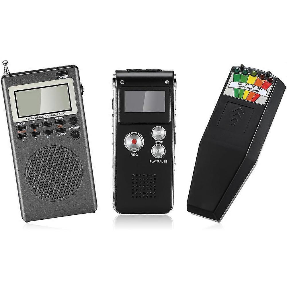 3 Pcs Equipment Include 1 Pcs Voice Recorder 1 Pcs LED Emf Magnetic Field Detector, Paranormal Research Tools