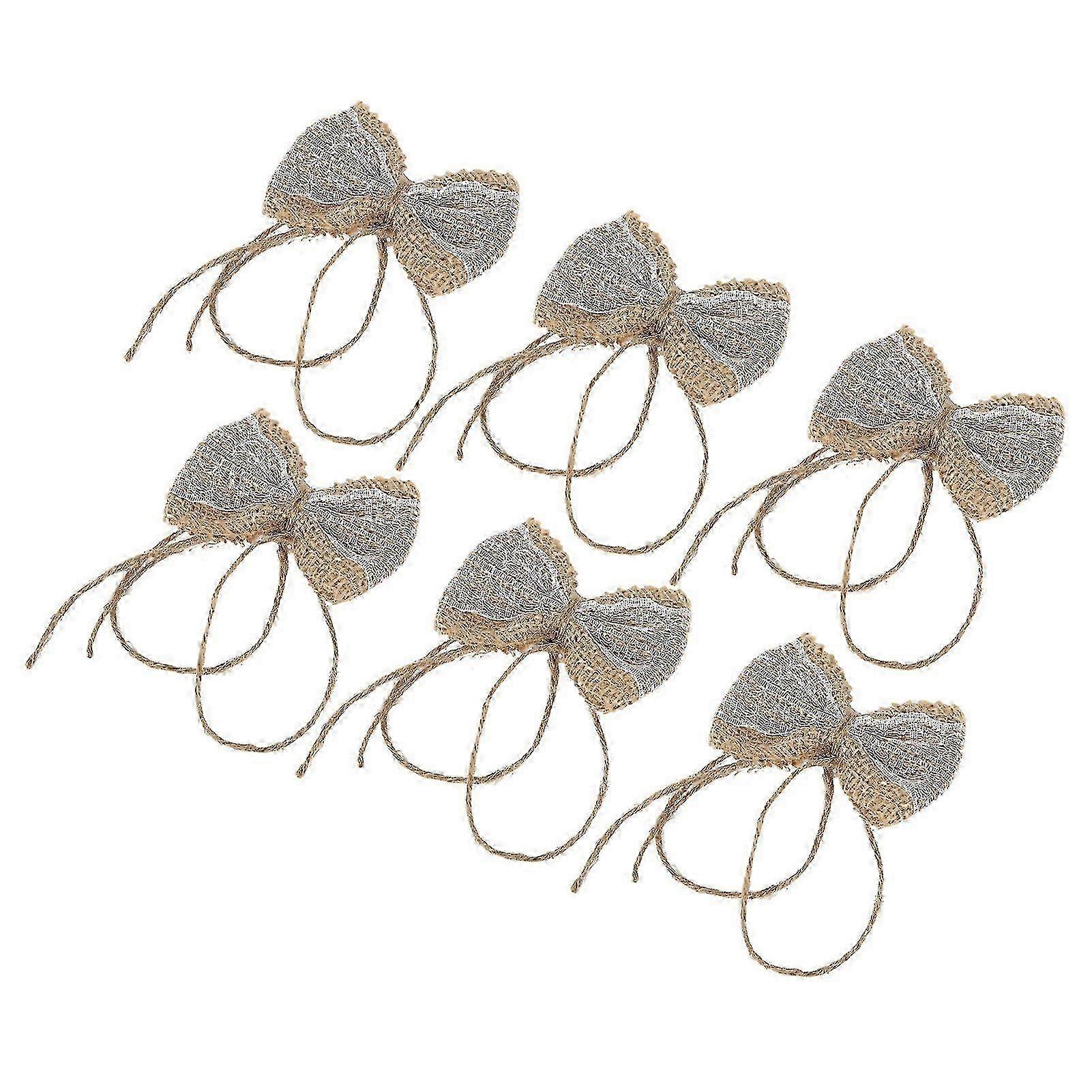 f 6-pack Rustic Burlap Lace Bows for DIY Christmas Party Home Decoration