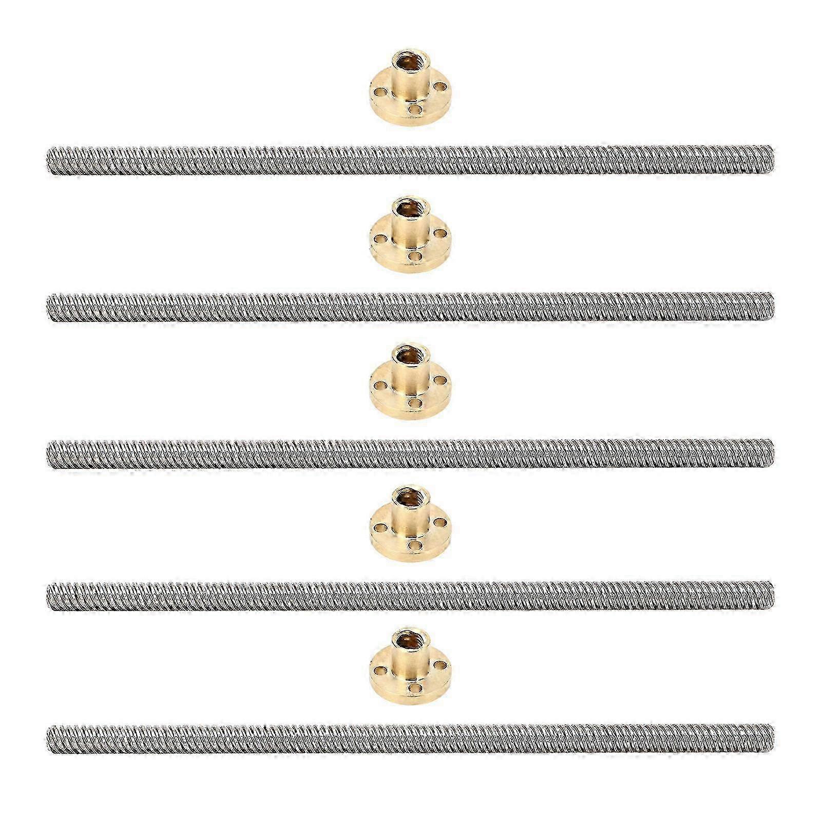 f 5 Pcs T8 Lead Screw 2mm Pitch 8mm Lead 200mm Linear Motion Threaded Rod with Brass Nut for 3D Printer