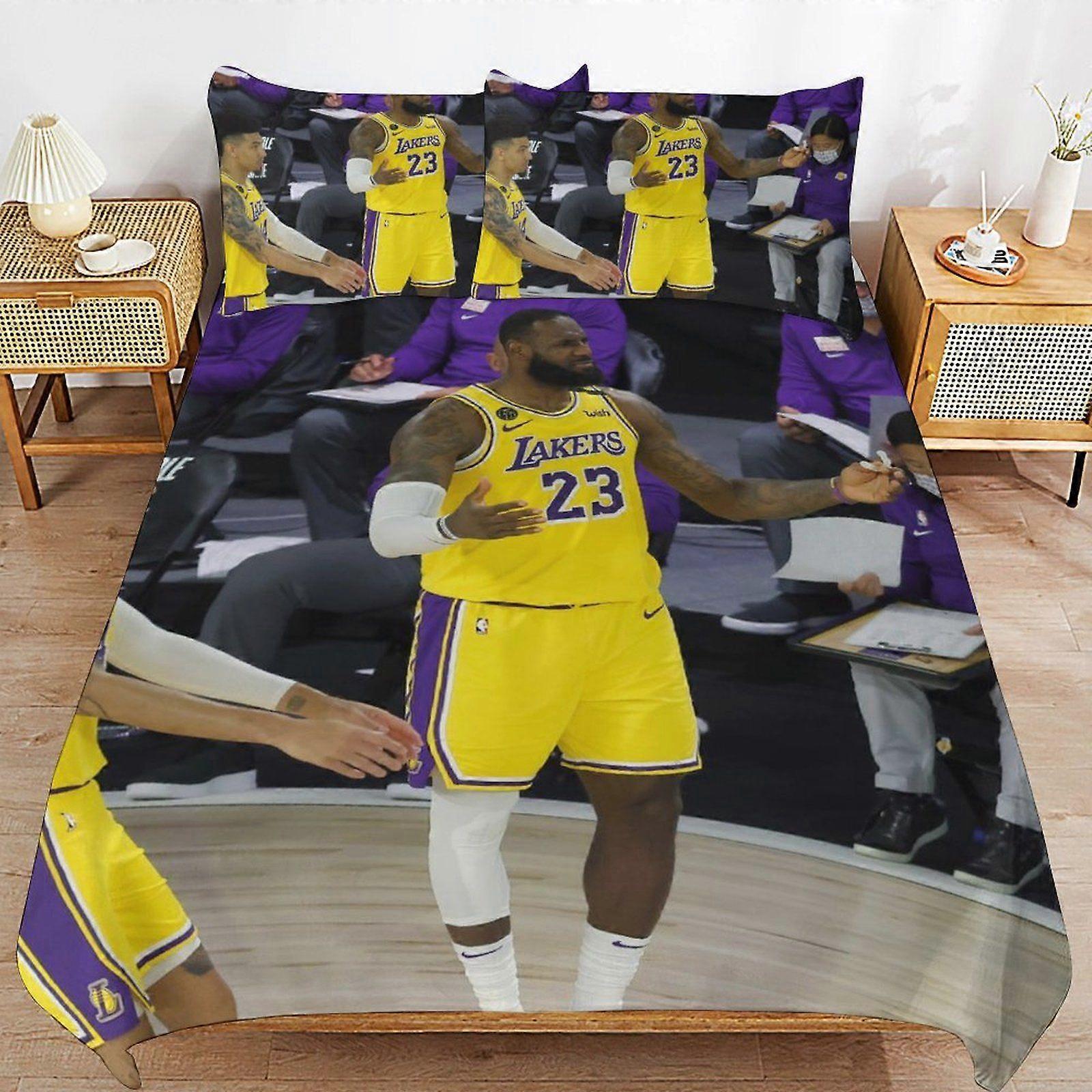w72 Lebron James In Los Angeles Lakers Uniform Classic Touch Soft Zipper Comfort Fabric Breathable Structure Duvet Cover Sets for Relaxing Sleep n72