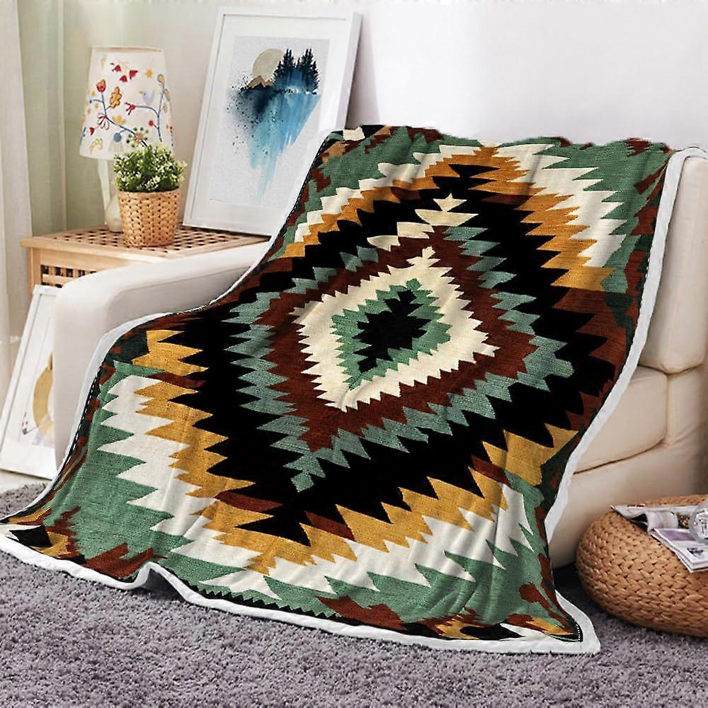 Southwestern Aztec Beige Blanket, Southwestern Native American Tribal Blanket, Vintage Flannel Soft Blanket-173x218cm
