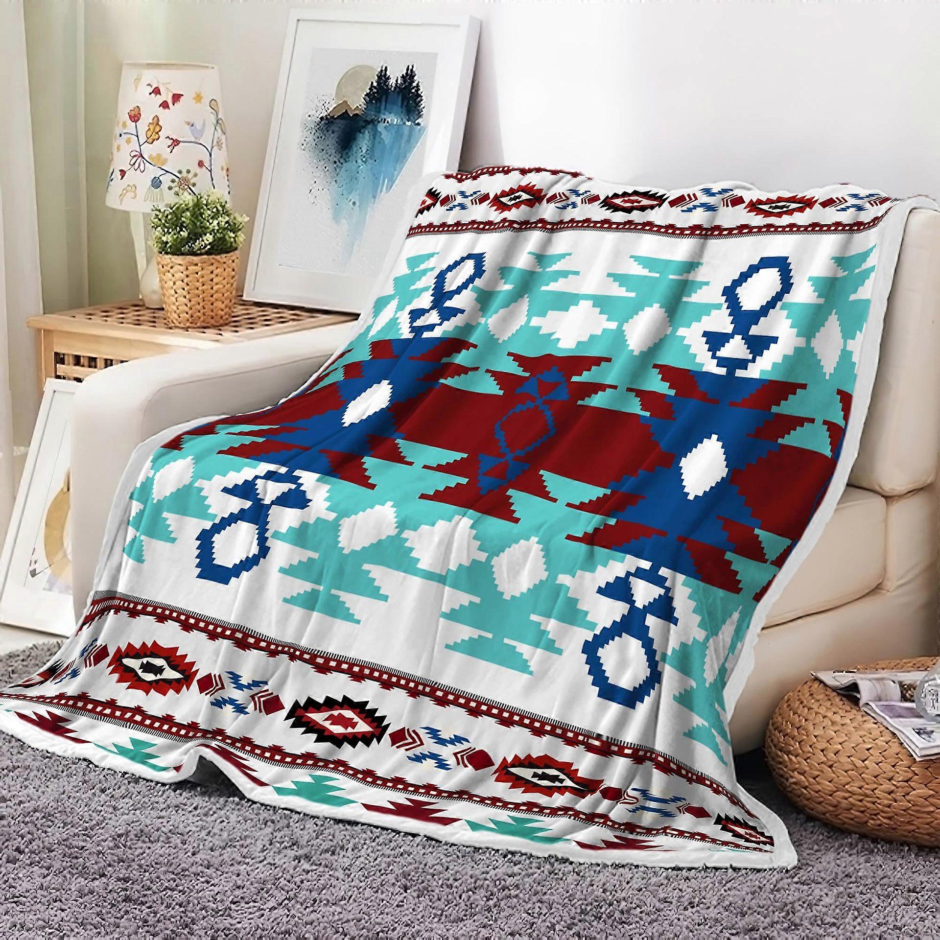 Southwestern Aztec Beige Blanket, Southwestern Native American Tribal Blanket, Vintage Flannel Soft Blanket-264x228cm