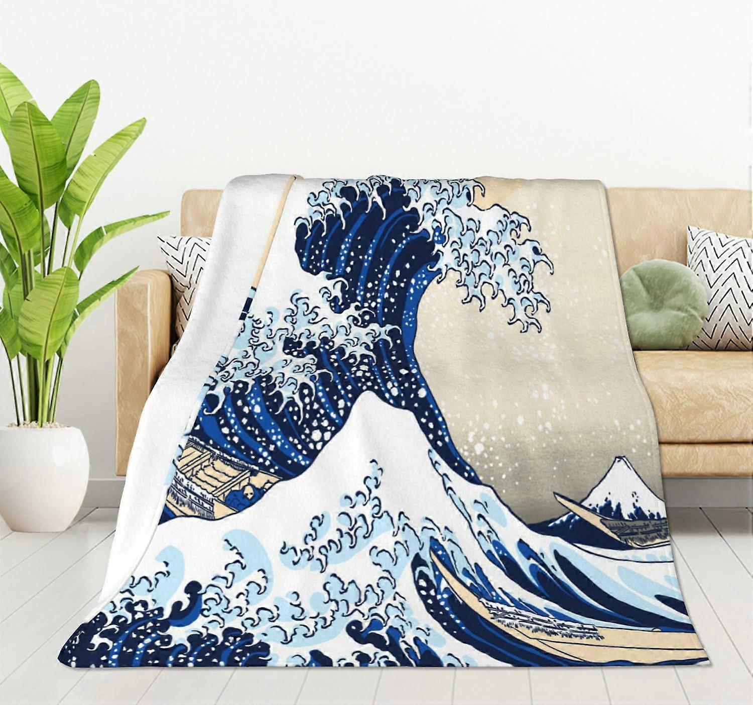 Wave Blanket, Ocean Fleece Blanket, Flannel Throw, Nap Blanket, -150x200cm