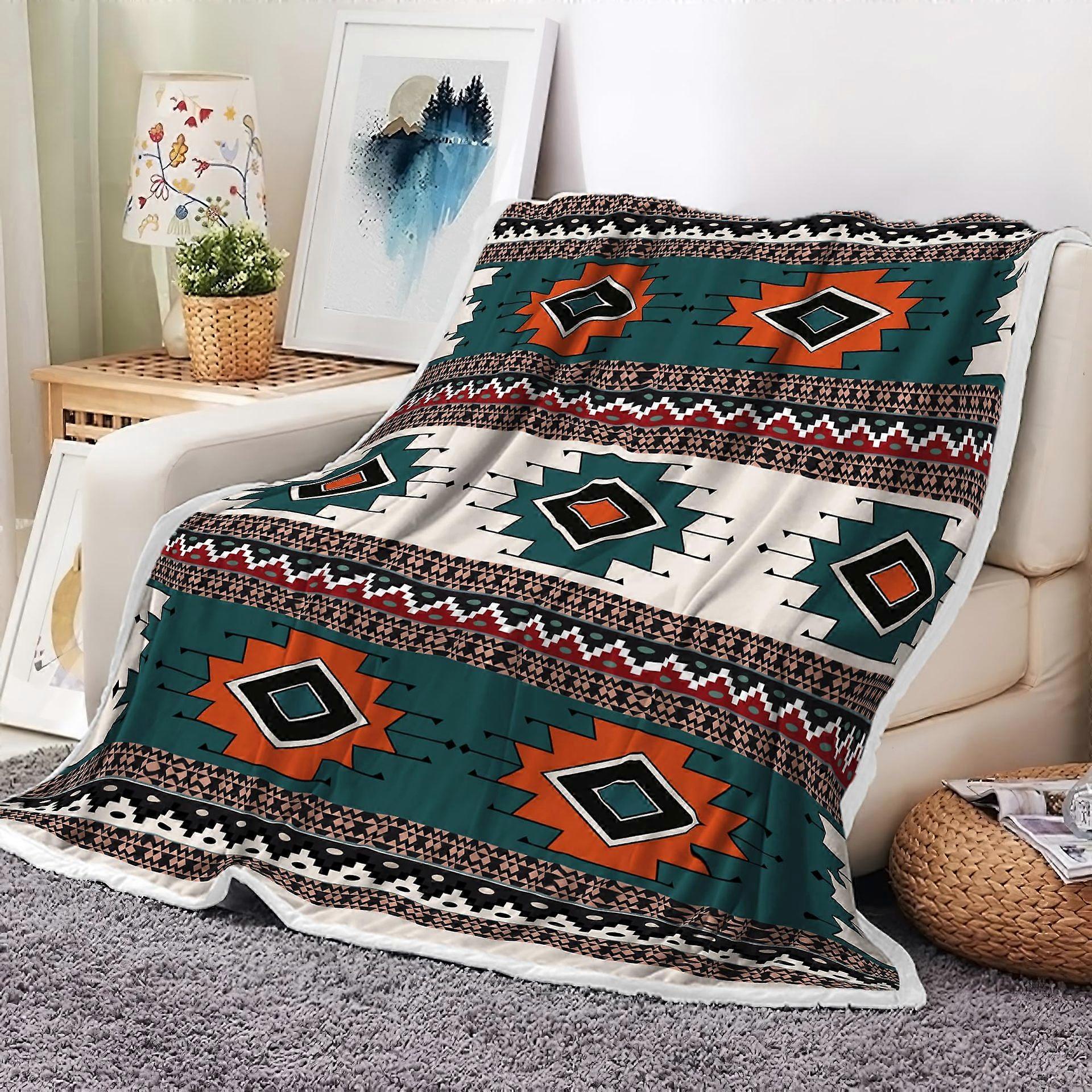 Southwestern Aztec Beige Blanket, Southwestern Native American Tribal Blanket, Vintage Flannel Soft Blanket-70x100cm
