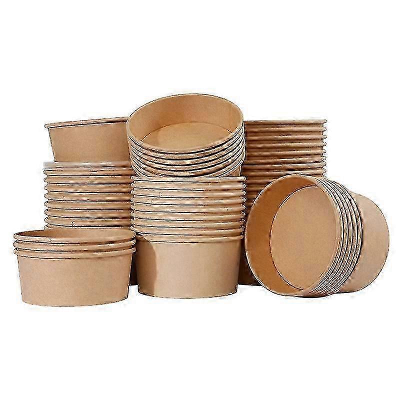 f 50 pieces Kraft paper bowl with lid, 25 oz disposable soup and salad serving bowl, ready-to-serve food container for party desserts, i