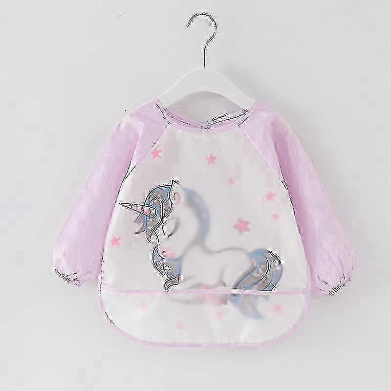 f Waterproof long-sleeved bib, children's bib with sleeves, unisex feeding apron (Purple)-HL