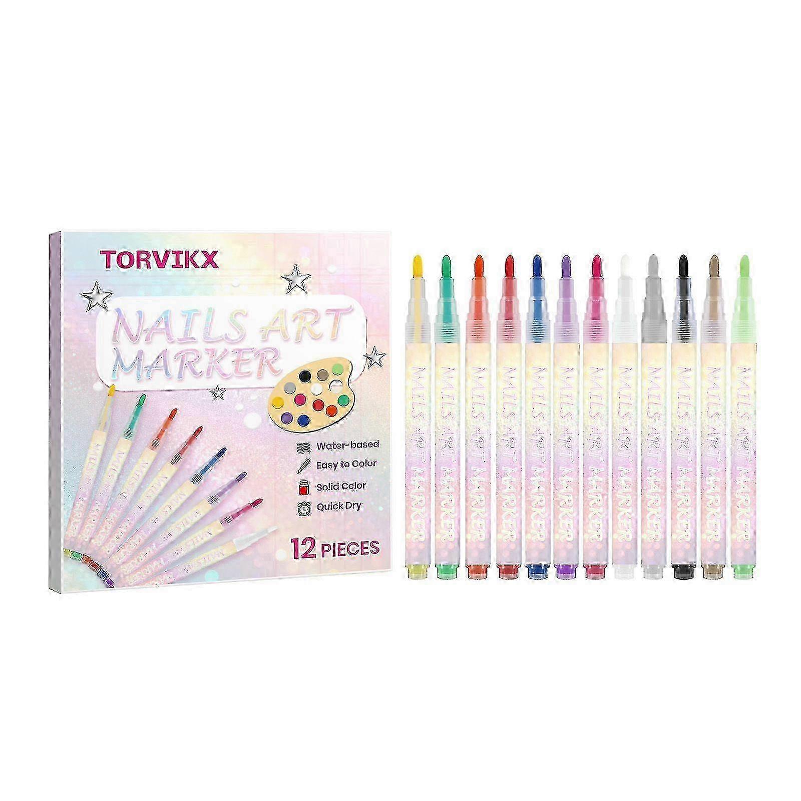 f 12 Colors Nail Art Pens Set, Nail Art Markers Doodle Pen for Kids Adults, Nail Art Tools for Dotting Drawing Painting Point Liner DIY