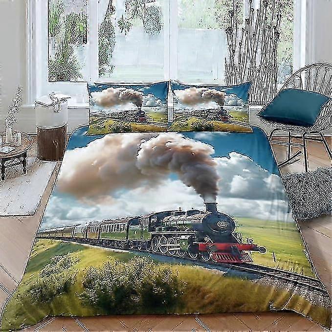f Voyage Train Couette Couvre 3D Imprimé Train à Vapeur Ensemble De Literie Housse De Couette Housse De Couette 3 Pièces