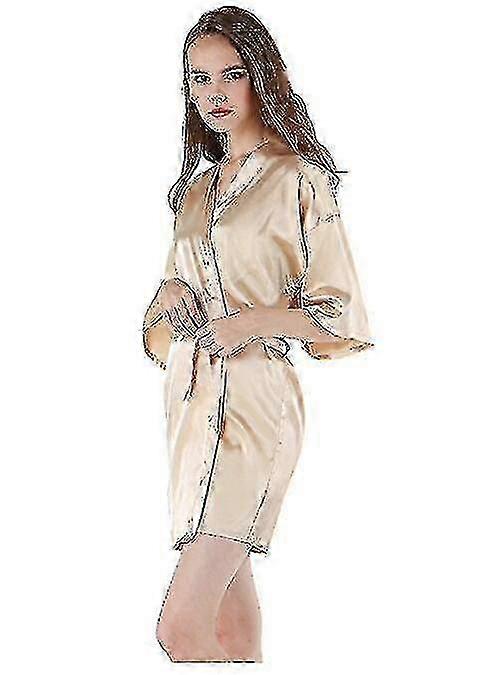 f Loungewear Sexy Satin Night Robe Lace Bathrobe