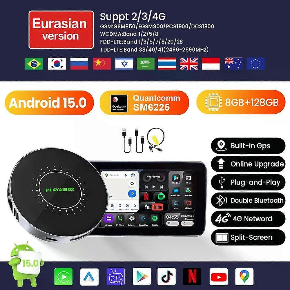 Android 15 Wireless CarPlay Ai Box Wireless Android Auto Built in GPS 8GB+128GB For Youtube Netflix For KiaSoulOptimaSoul EV