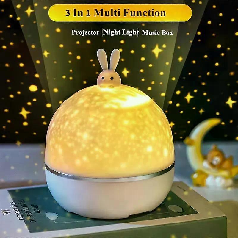 Bunny Star Light Projection Rotating Star Bedroom Ceiling Atmosphere Night Lamp Stars Childrens Birthday Gift with Films Sheet