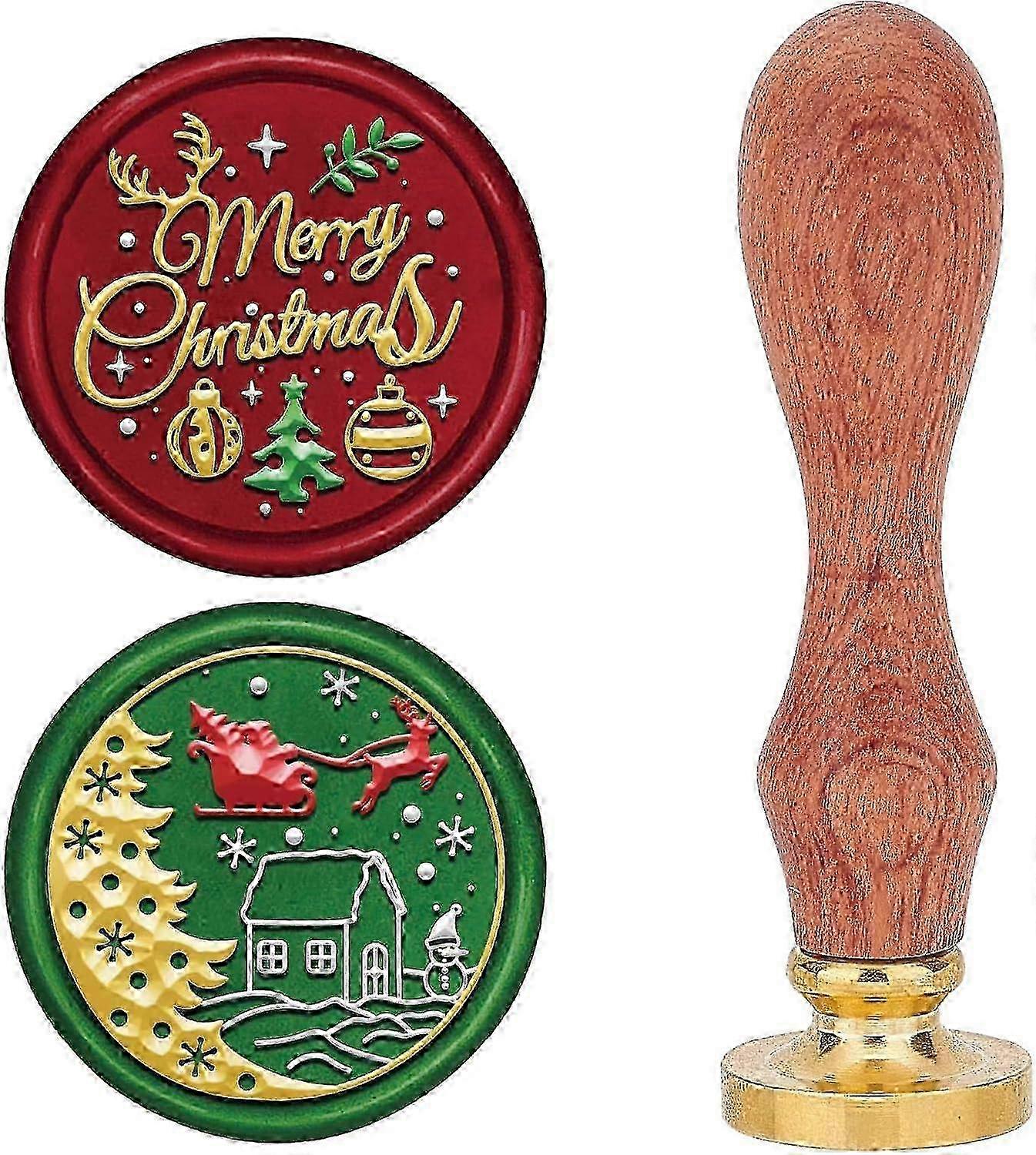 f 2 Style Merry Christmas Wax Seal Stamp Set Brass Sealing Stamp Heads+1pc Wood Handle Removable Kit Snowflake Reindeer Santa Claus Pine
