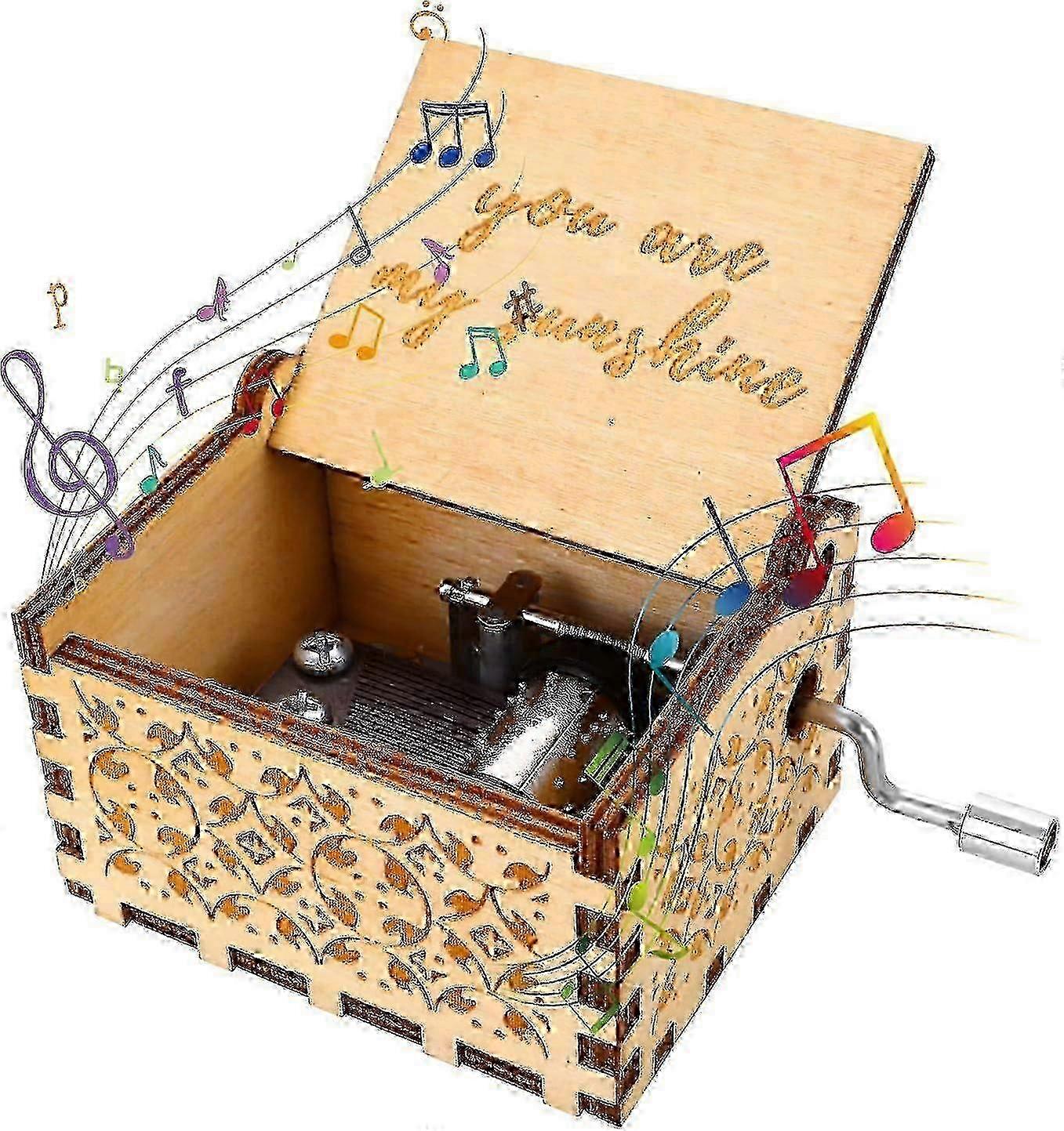 f You Are My Sunshine Hand Crank Music Boxes,wood Music Boxes Mini Classic Vintage Wooden Music Box,gift For Valentine's Day Wedding Day