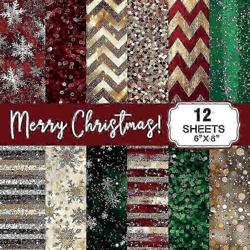 f Christmas Scrapbook Paper Pad 12 Sheets 6x6 Glitter Confetti Snowflake Single-sided Prints Cardstock 160gsm Acid-free Decorative