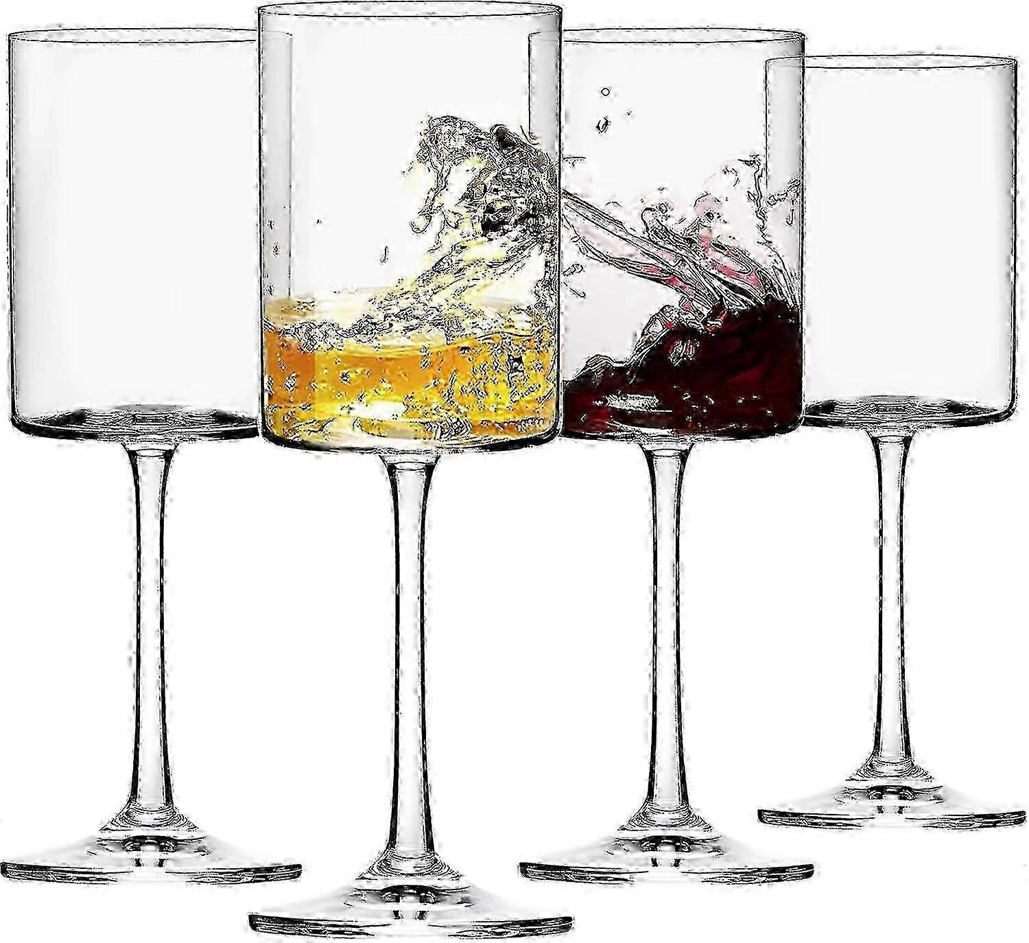 Clearance Set of 4 Square Wine Glasses with Modern Crystal Stem - 14oz SBSG Glasses for White Wine Enjoyment