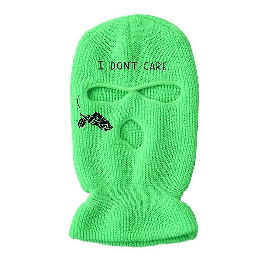 3-Holes Full Face Cover Knitted Neck Cover Winter Letters Embroidered Balaclava Outdoor Sports Cycling Hat for Men Women Green-sj1