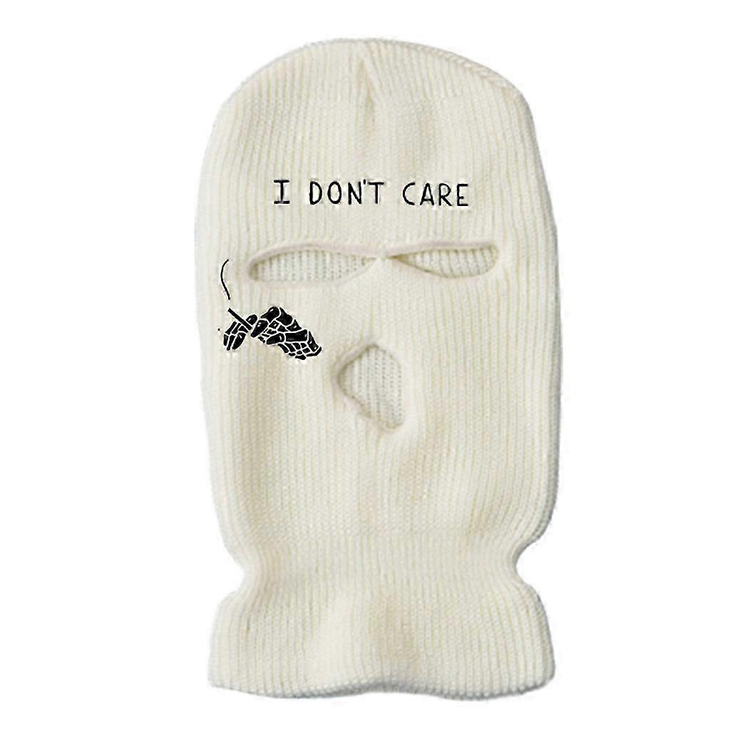 3-Holes Full Face Cover Knitted Neck Cover Winter Letters Embroidered Balaclava Outdoor Sports Cycling Hat for Men Women White-sj1