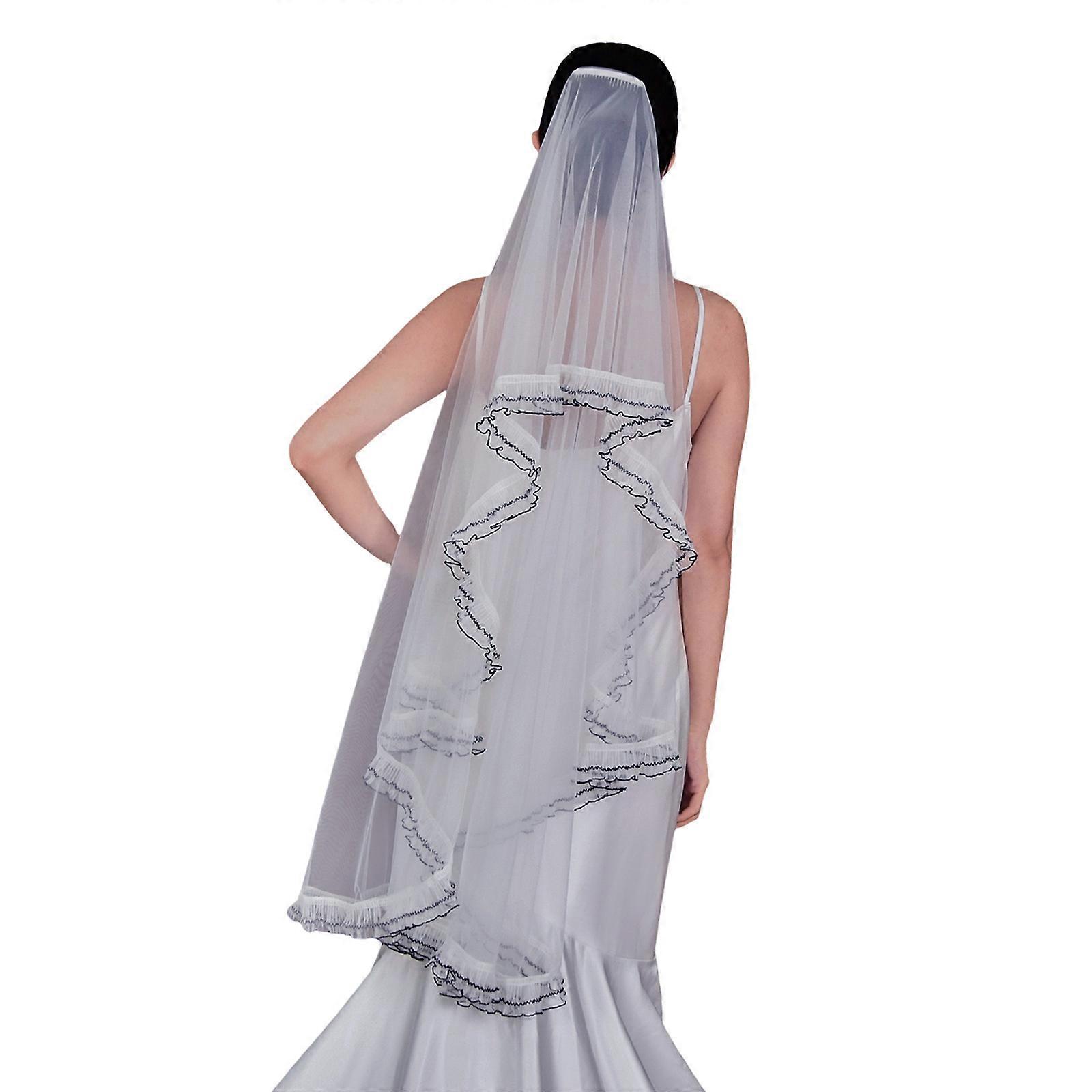 Two Layered Lace Trimmed Bride Veils with Hair Comb Seethrough Sheer Tulle Veils For Wedding Ceremony Special Occasion White