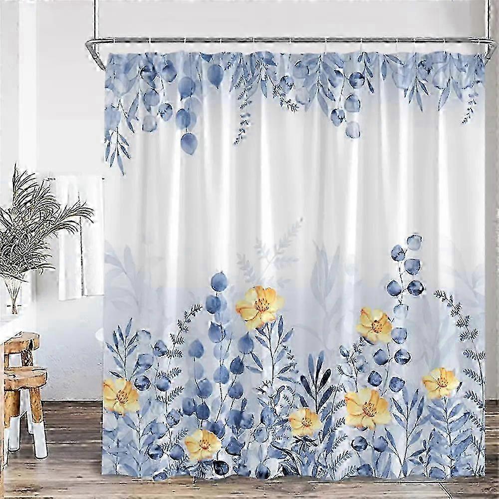 Blue Leaves Shower Curtain, Watercolor Plant, Eucalyptus Leaf, Modern and Simple, Fabric Bathroom Decor, Bath Curtains with Hooks,180x210cm-70x83
