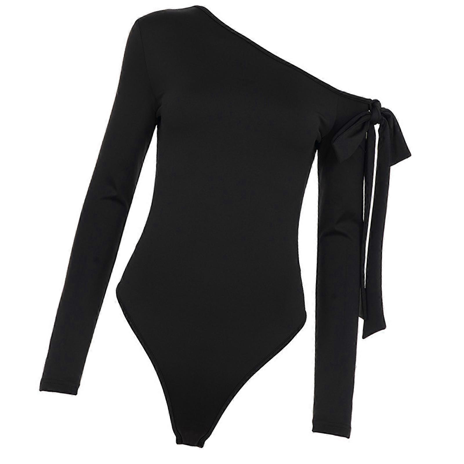 Women's Bows Lace Up One Shoulder Bodysuits Leotard Fashion Long Sleeve Body Suits Tops Shirt Going Out Tops S