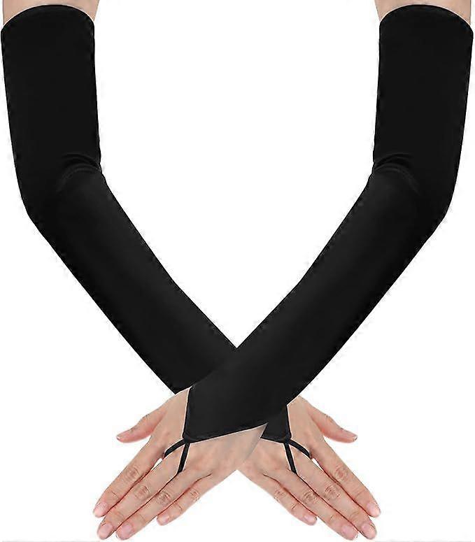 Women's Long Gloves, Fingerless Silk Gloves, Opera Gloves, Satin Opera Gloves for Cosplay, Prom, Dance, Opera (Black)