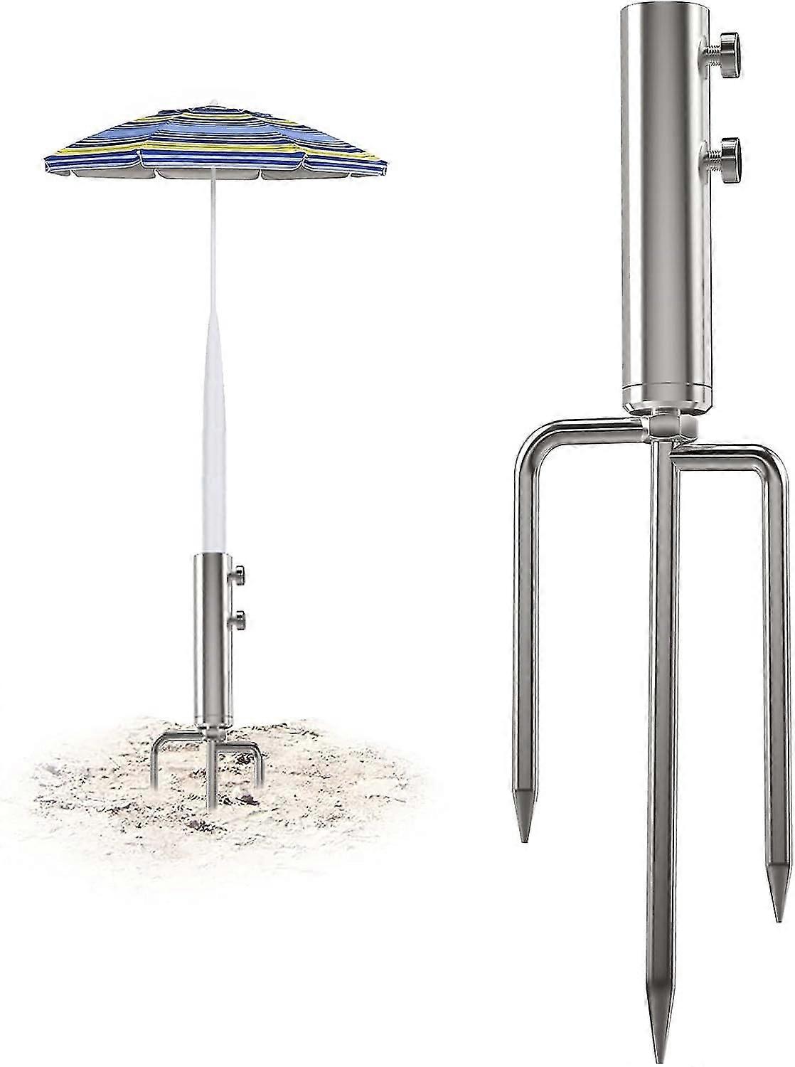 Sturdy and durableThe umbrella stand is equipped with 3 legs, which makes it more stable and stronger than a normal 1/2 leg umbrella stand. The umbrella stand is made from high quality tough and reinforced industrial grade material for long life, it will not be subject to environmental erosion like ordinary plastic umbrella stands. Sturdiness and durability are the biggest advantages. Product SizeThe silver umbrella stand anchor is 36cm long, the ground anchor is 20cm long, the mounting tube is 16cm long and the mounting tube hole is 3cm long. The fastening screw can adjust the size of the diameter. It is removable, the top tube and the bottom ground anchor can be detached for easy storage and portability. MaterialThe umbrella ground anchor is made of heavy duty, high quality metal with a galvanised finish to protect against rust. The threaded adjustment screws are also made of high quality steel, which are not easily damaged and provide good tightness. Less damageCompared to other umbrella stands with their own drill, our parasol base leave fewer marks on the lawn - just a few small, unnoticeable holes and no brown marks on the lawn. This means the umbrella stand holder can stay in one place for a longer period of time without damaging the lawn. Scope of applicationThe parasol stand holder can be used on beaches, lawns and land. It is suitable for umbrella poles with a diameter of less than 3cm. It is suitable for garden umbrellas, swinging drying poles, bird feeding poles, flag poles, string light poles, ball poles, outdoor Christmas trees etc.