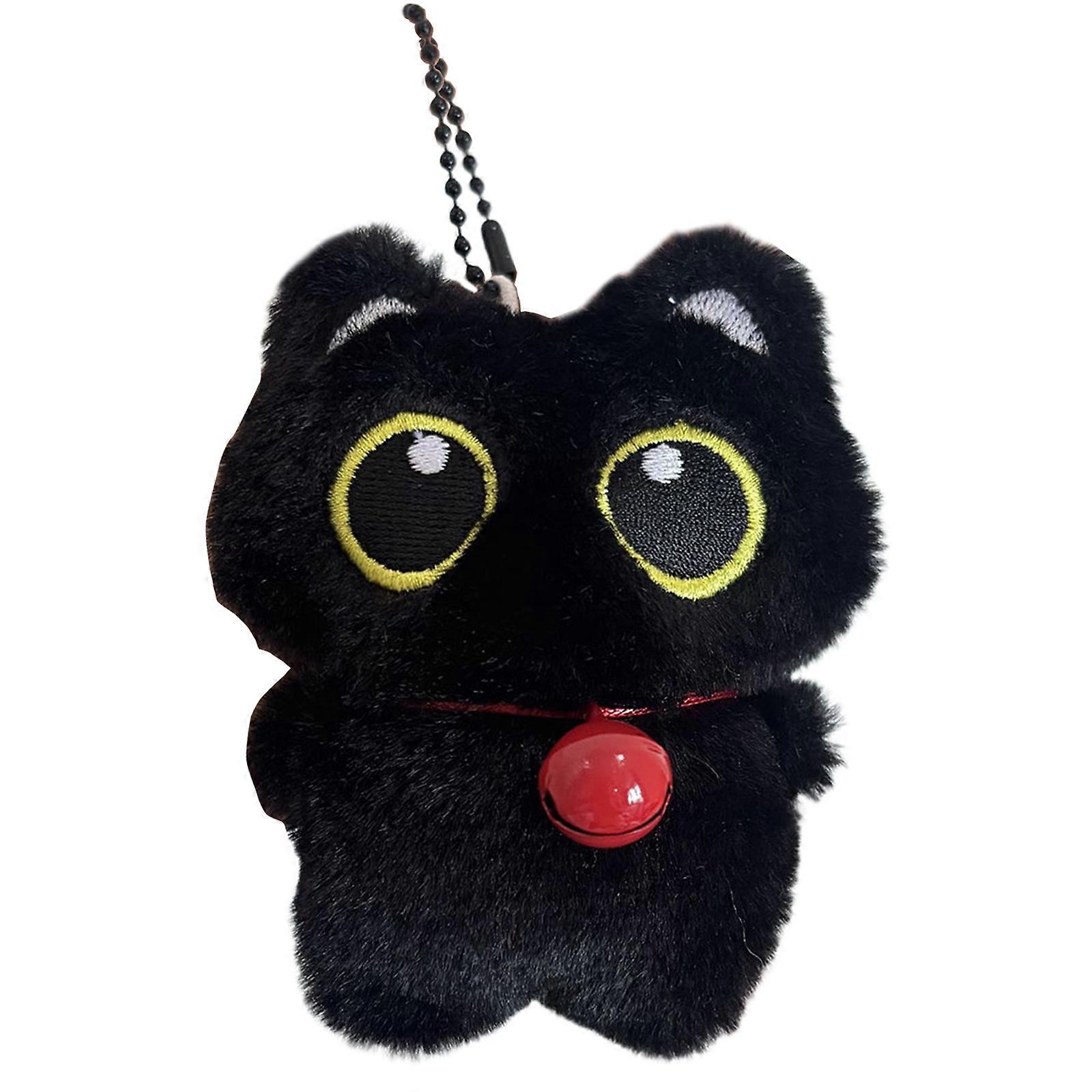 Festive Plush Black Kitten Doll Keychain Feature Scarf Bells Fish Charm Christmas Tree Decoration Gift For Kids Friend Multicolor