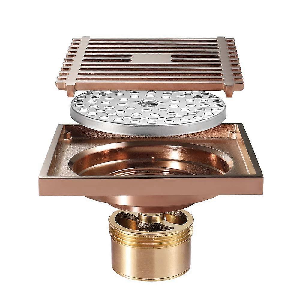 Shower Drain Cover with Hair Catcher, 4 inch Rose Gold Brass Square Floor Drain for Bathroom Kitchen