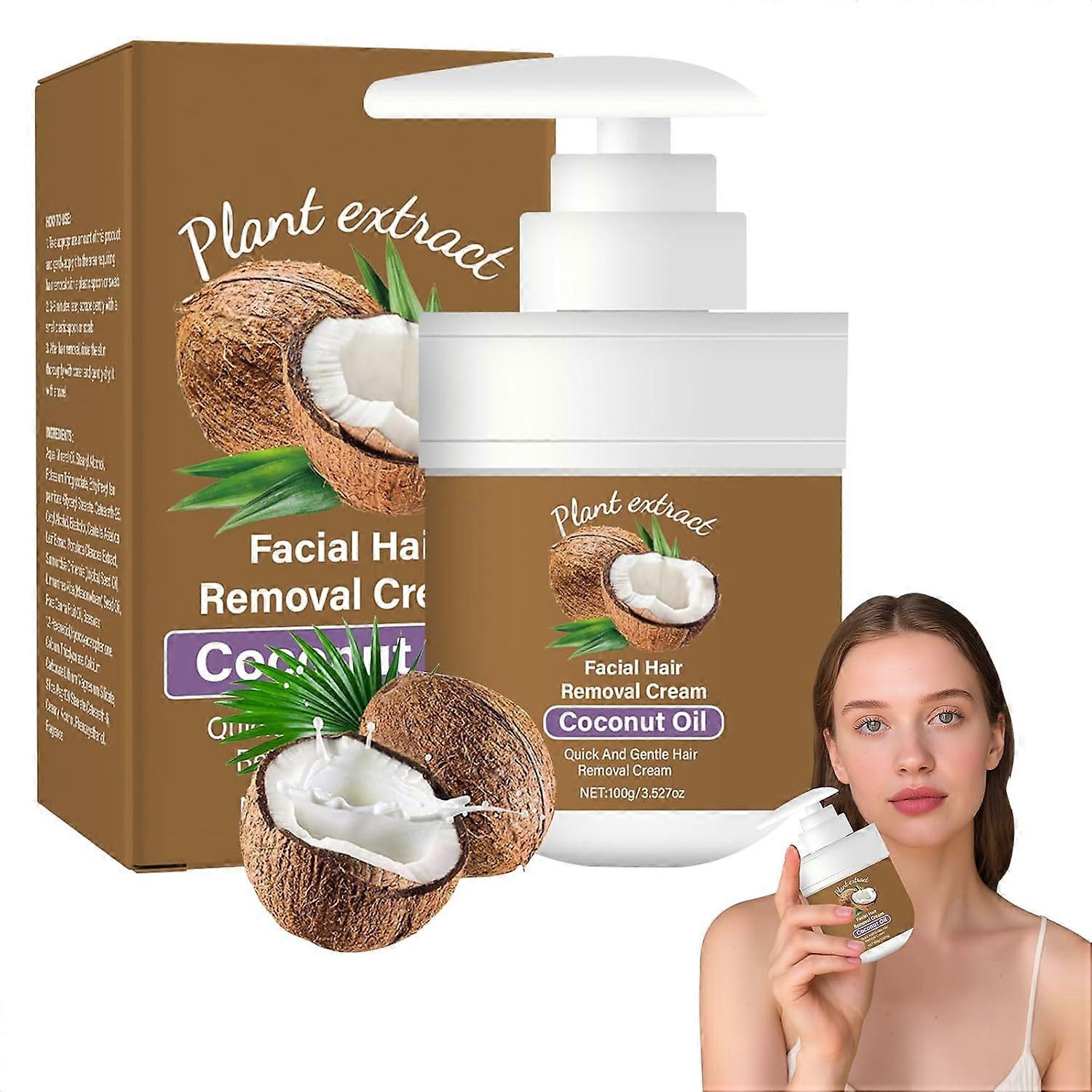Facial Depilatory Cream, 100ML Coconut Facial Hair Removal Cream for Women for Upper Lip & Chin for Women for Sensitive Skin, Gentle and Non-irritatin