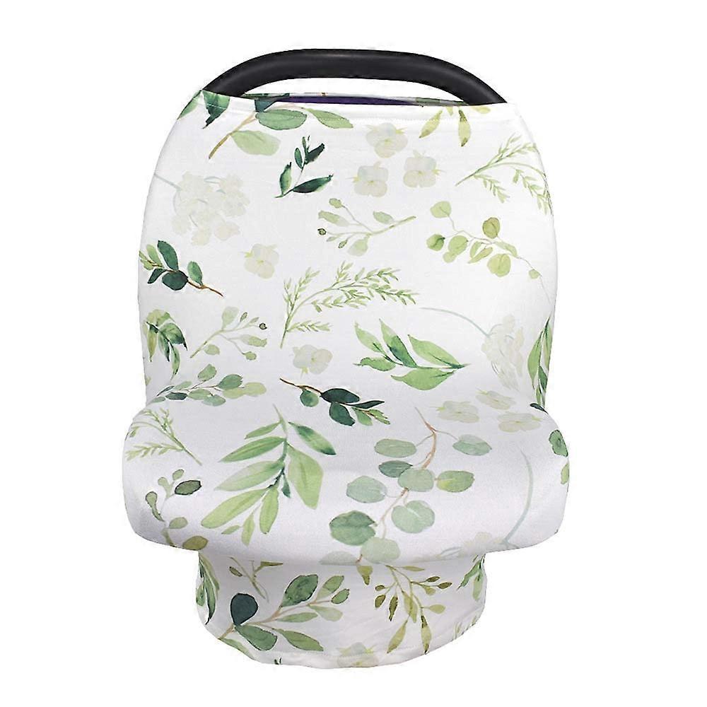 Breastfeeding Nursing Cover and Baby Car Seat Canopy for Infants, Green Leaf Pattern
